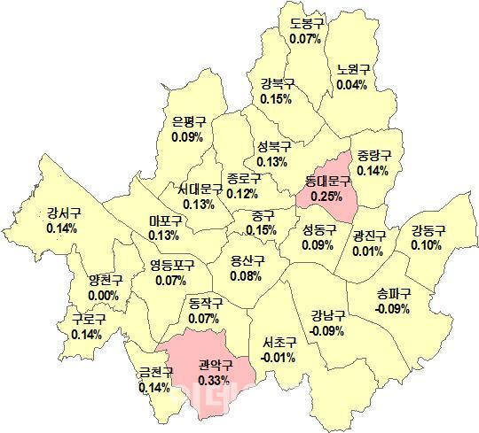 서울 관악·동대문구 집값 '껑충'..강남3구는 시무룩