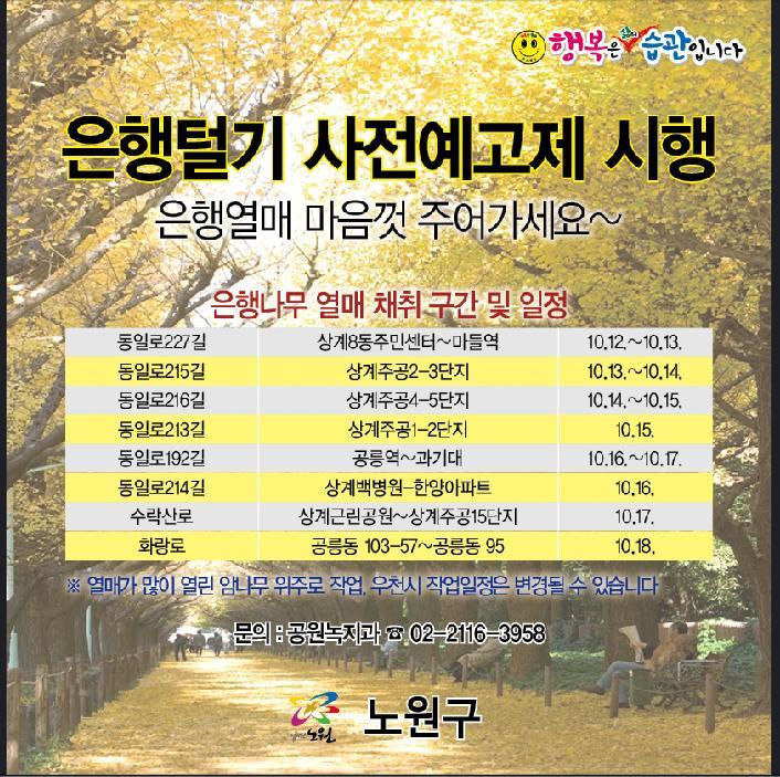 가로수 은행 열매 안정성 검사 결과 적합(서울시보건환경연구원)