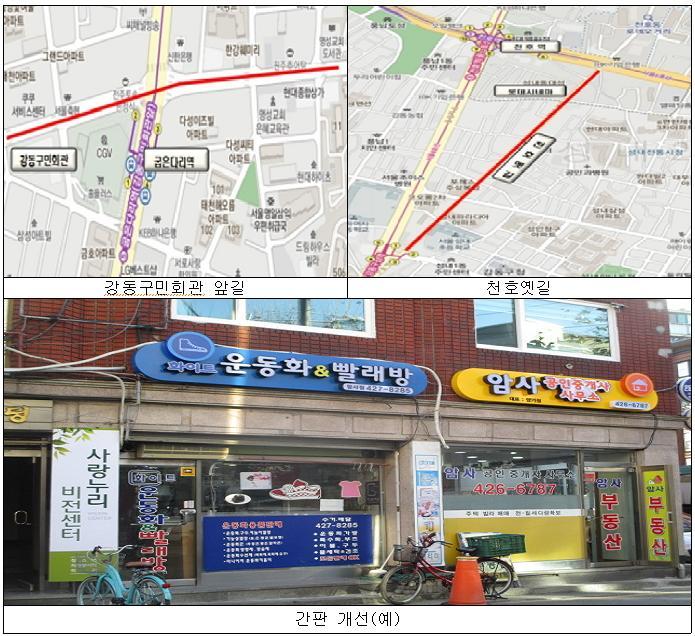 - 9월 말까지 구민회관 앞길‧천호옛길 일대 131개 업소 간판 개선 - 1개소 당 최대 250만원 지원…도시 미관 개선 및 상권 활성화 기대