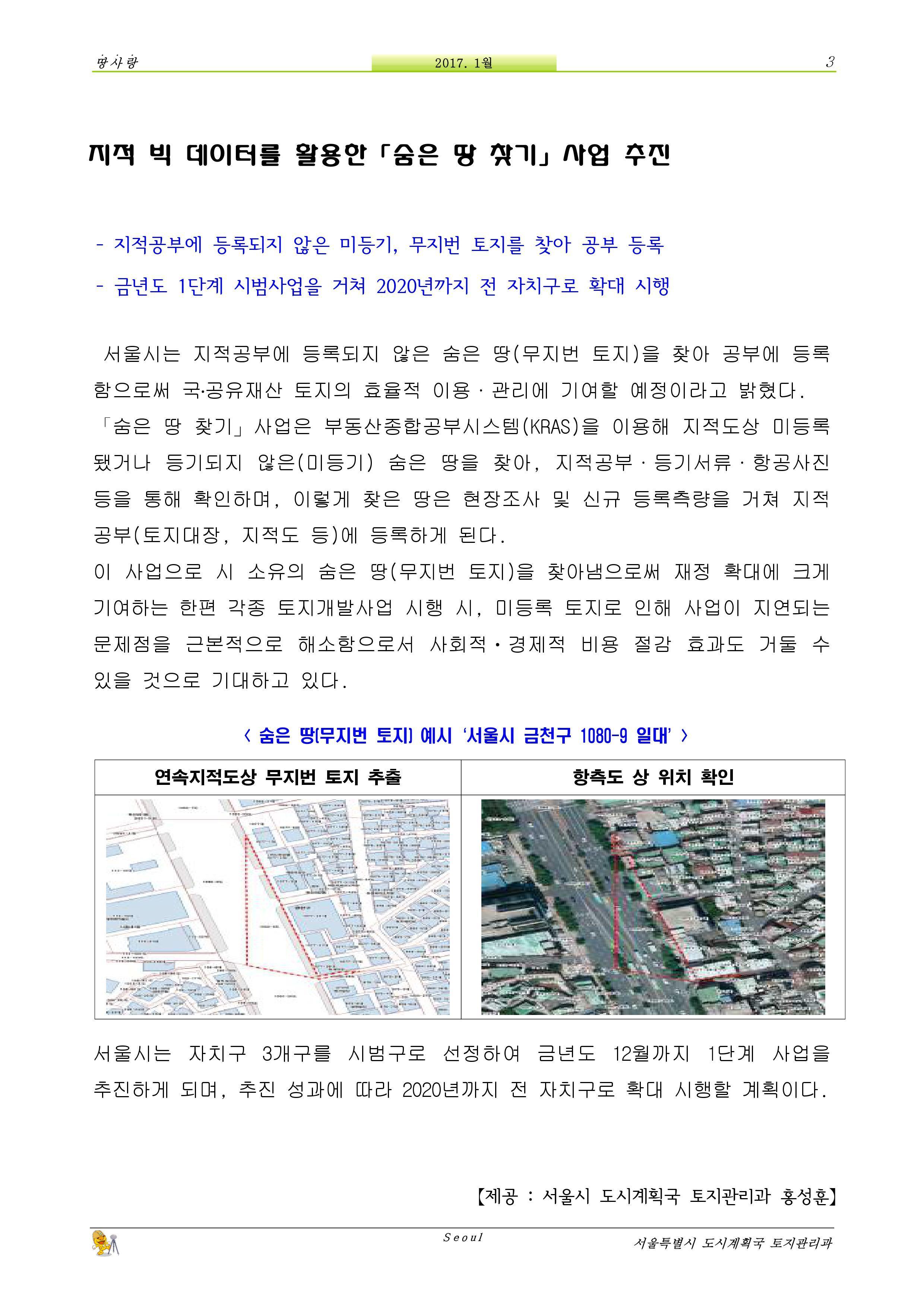 -지적 빅 데이터를 활용한 "숨은 땅 찾기" 사업 추진