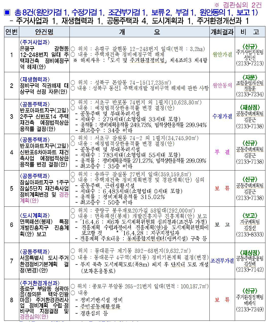 제2차 서울특별시 도시·건축공동위원회 개최결과