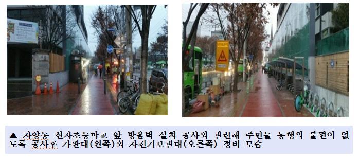 광진구, 자양동 신자초등학교 도로 전면에 연장 60m, 높이 6m 규모의 방음벽 설치 공사 지난해 말 완료