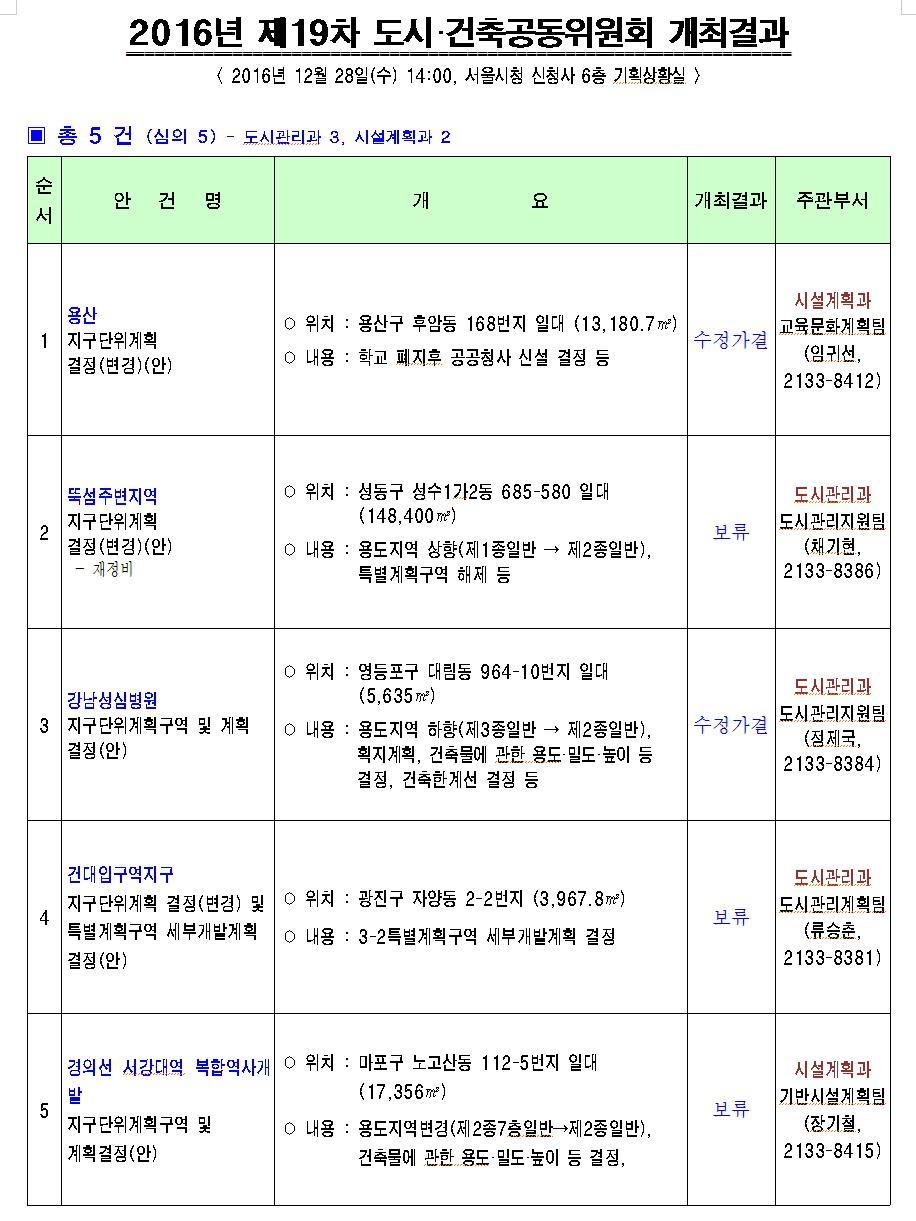 제19차 서울특별시 도시·건축공동위원회 개최결과