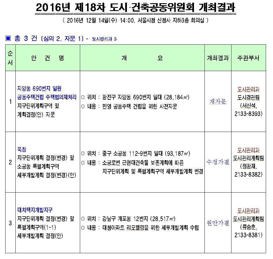 제18차 서울특별시 도시·건축공동위원회 개최결과