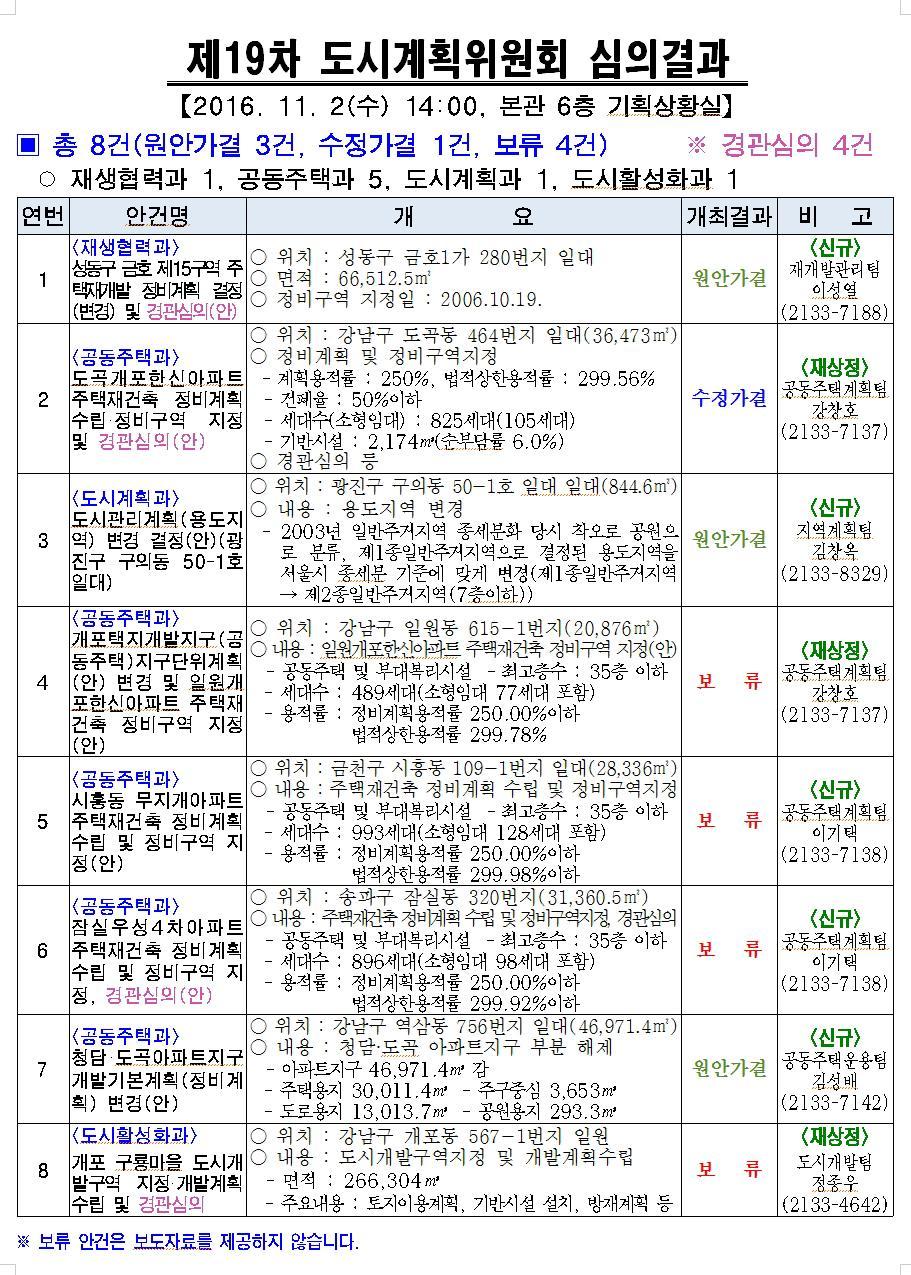 2016년 제19차 서울특별시 도시계획위원회 개최결과