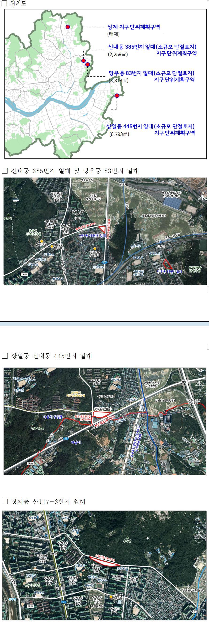 GB 해제 소규모 단절토지 4개소 지구단위계획(안) 원안가결