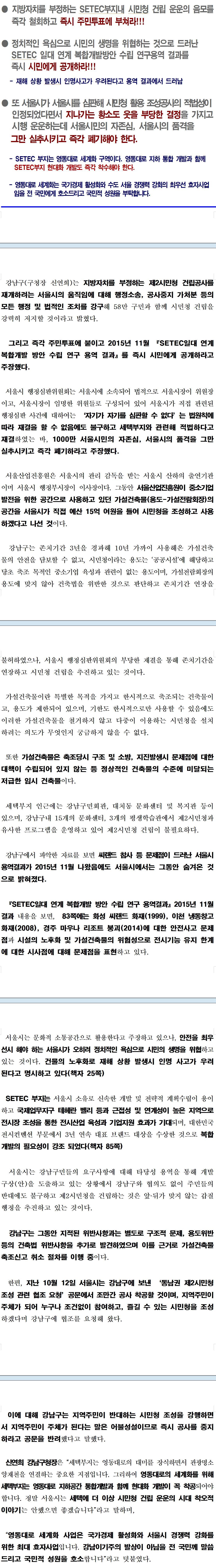 서울시는 SETEC부지내 시민청 건립를 즉각 철회하고 즉시 주민투표에 부쳐라