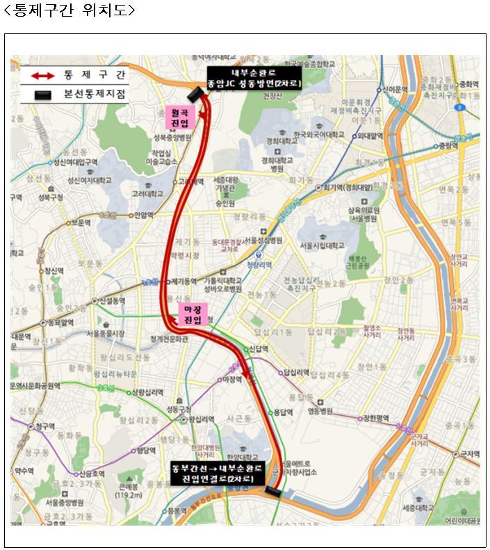 서울시, 22일 0시부터 내부순환로 정릉천고가 전면통제